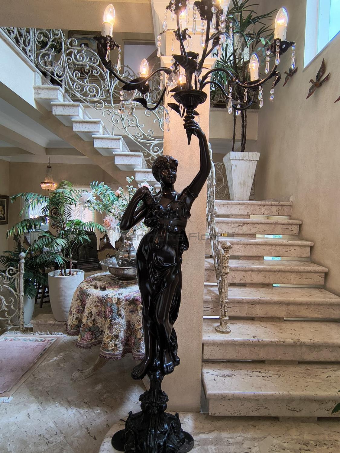 Escada principal em mármore moldurado, com design elegante e imponente.