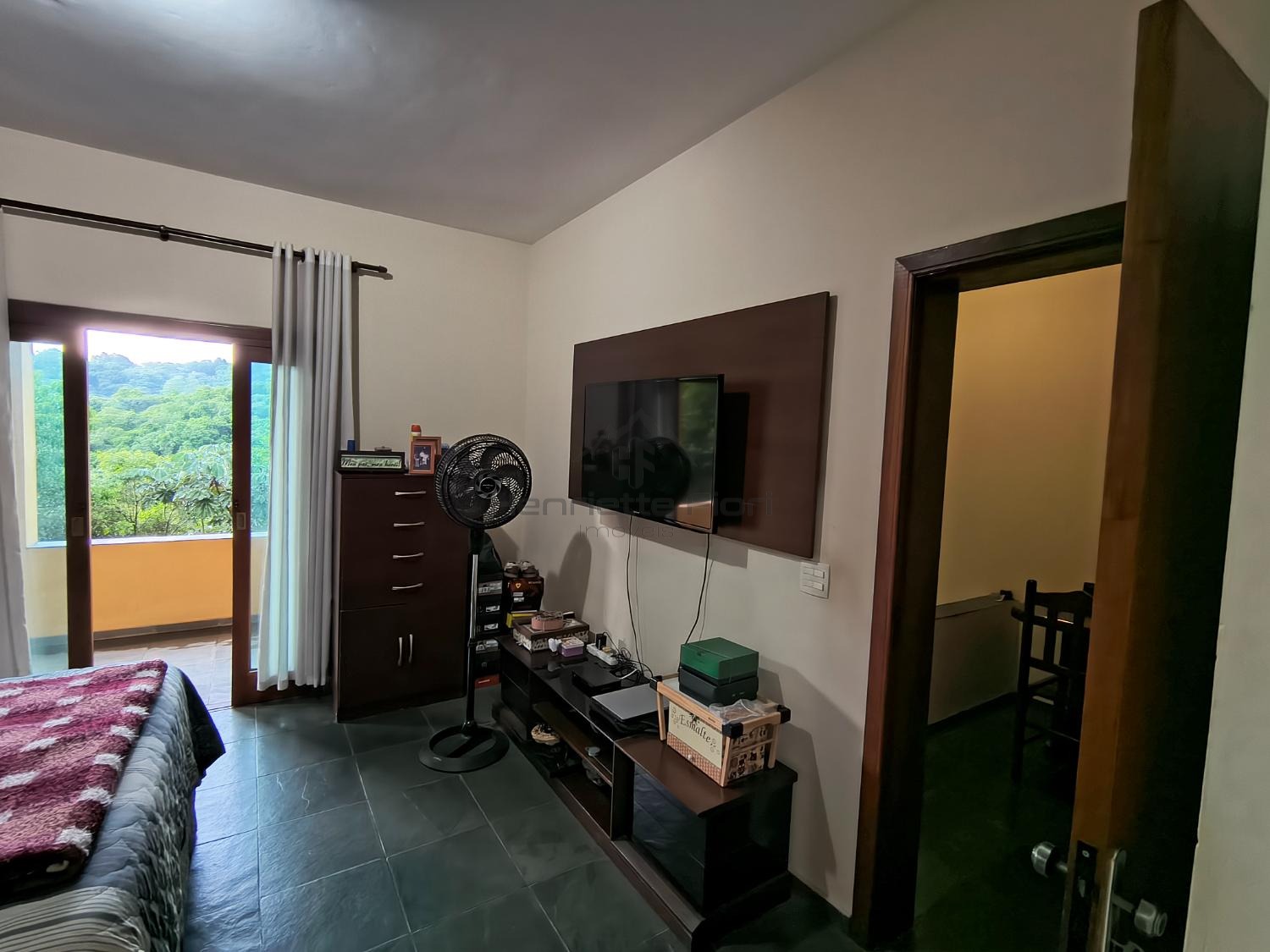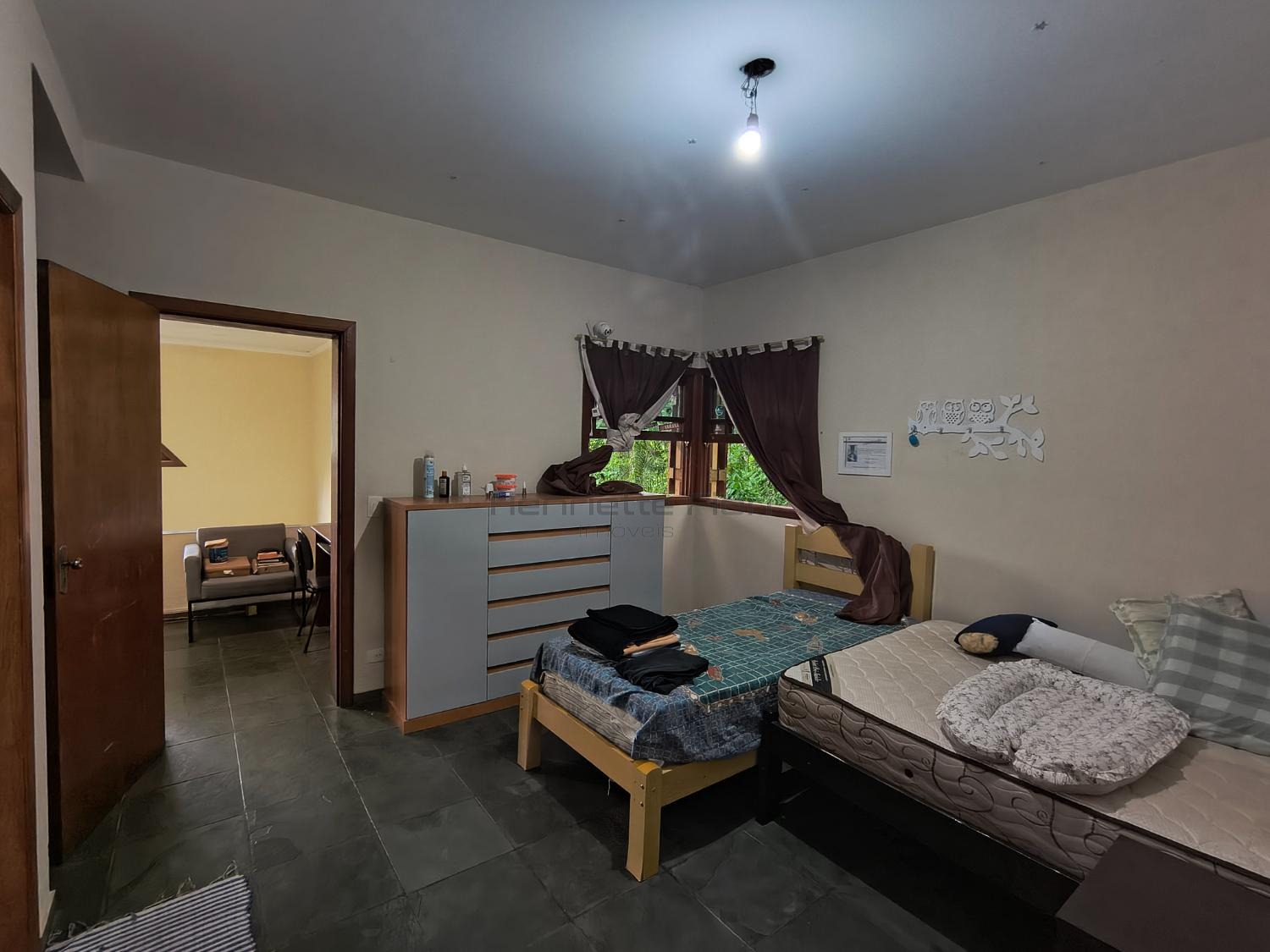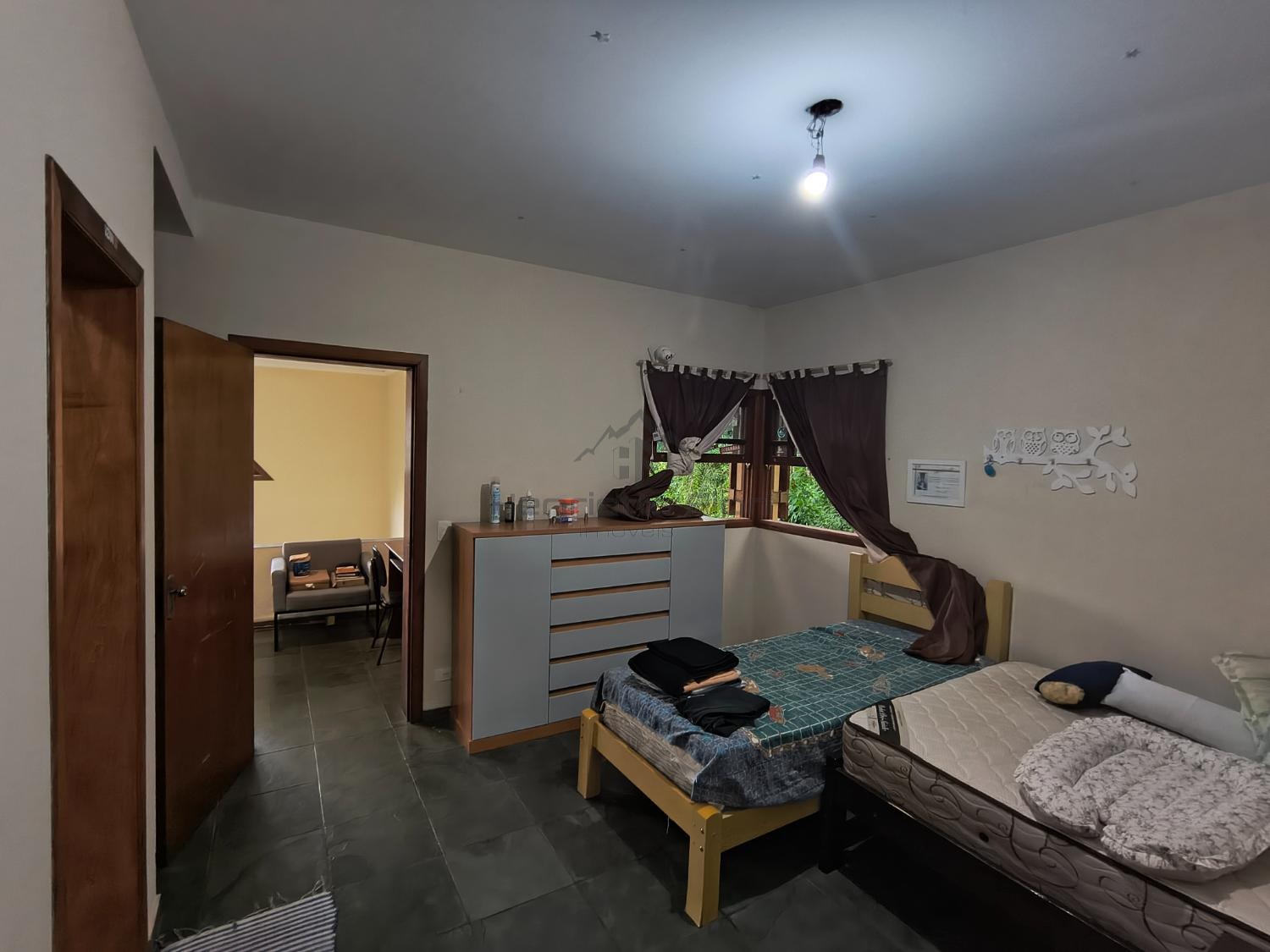 Quarto ao lado do mezanino, que funciona como sala íntima, com 2 janelas voltadas para a área de preservação