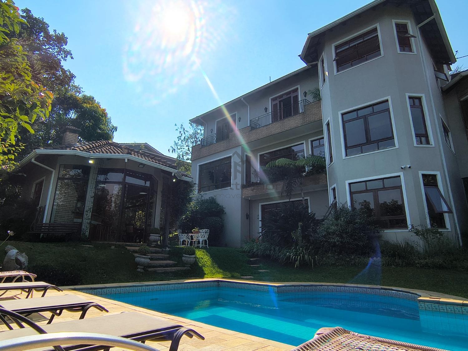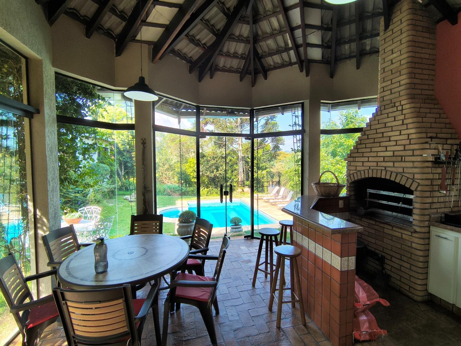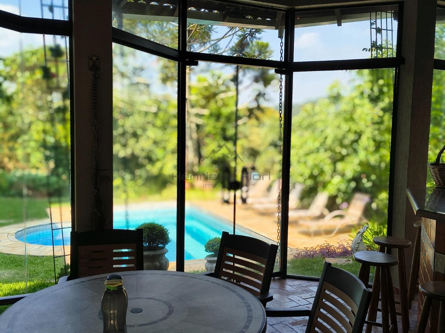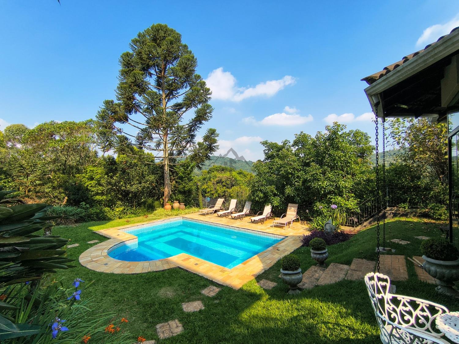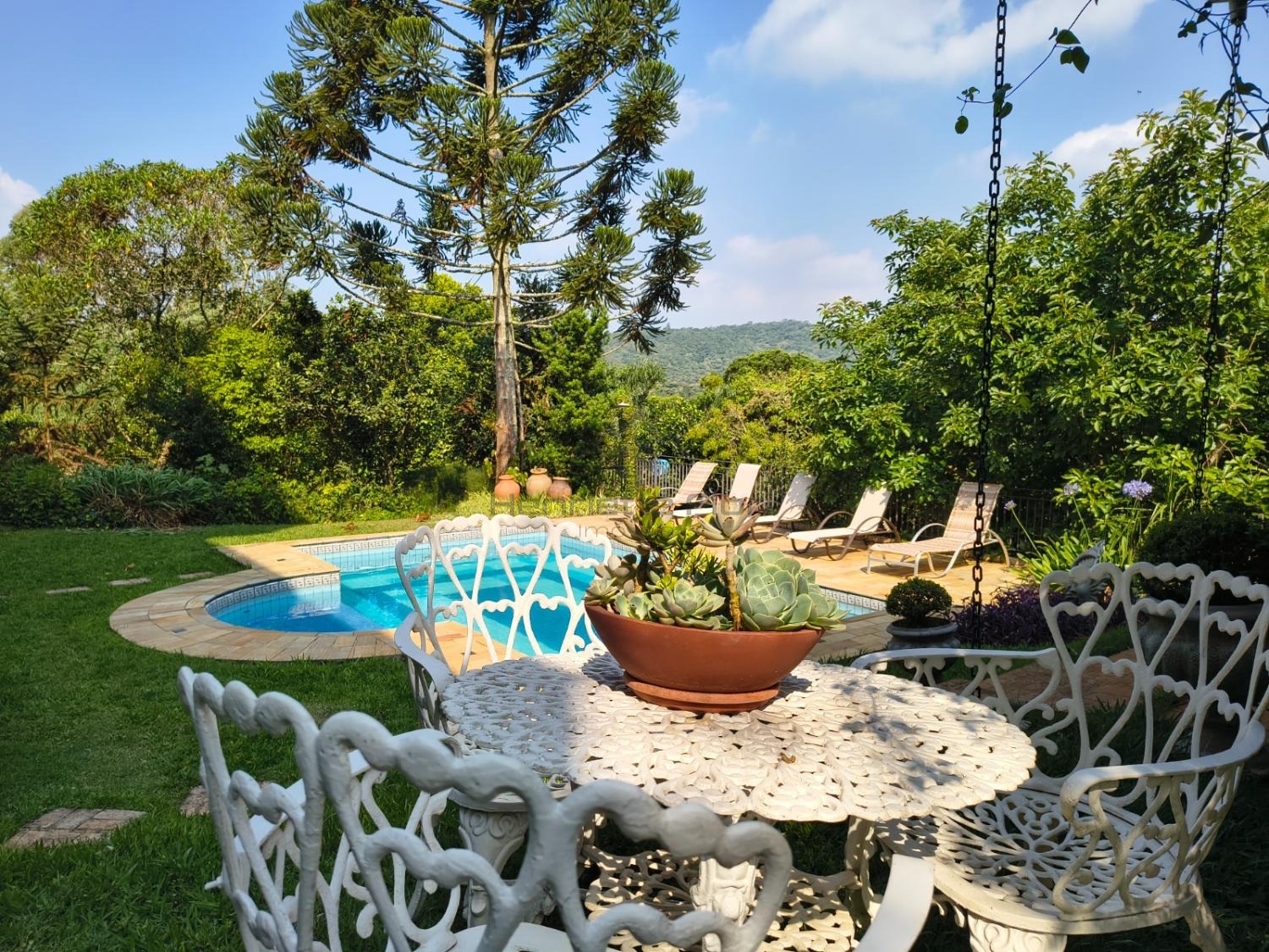 Logo na entrada, uma imponente araucária em plena produção emoldura a área da piscina, integrada a um belíssimo jardim paisagístico. O espaço de lazer conta com área gourmet completa, churrasqueira, banheiro e vestiário, ideal para receber com conforto e elegância. Há ainda um charmoso espaço para leitura e contemplação da natureza.