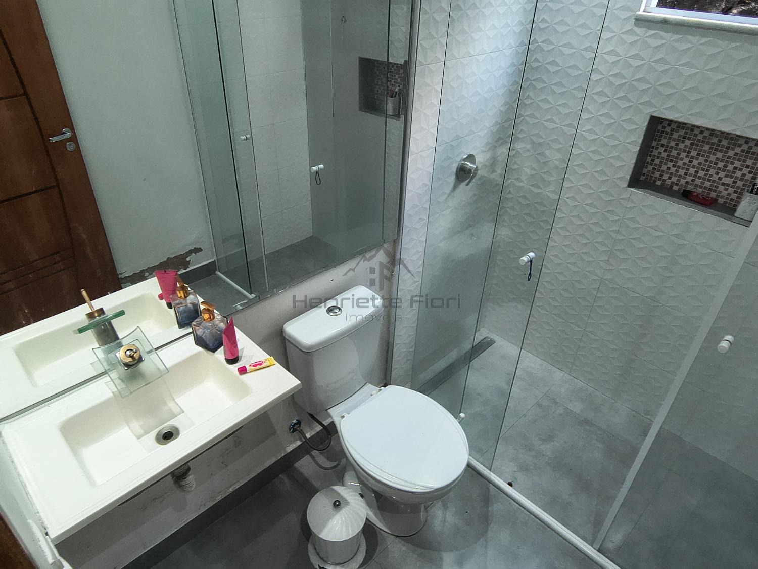 Banheiros do piso superior finalizados com porcelanato