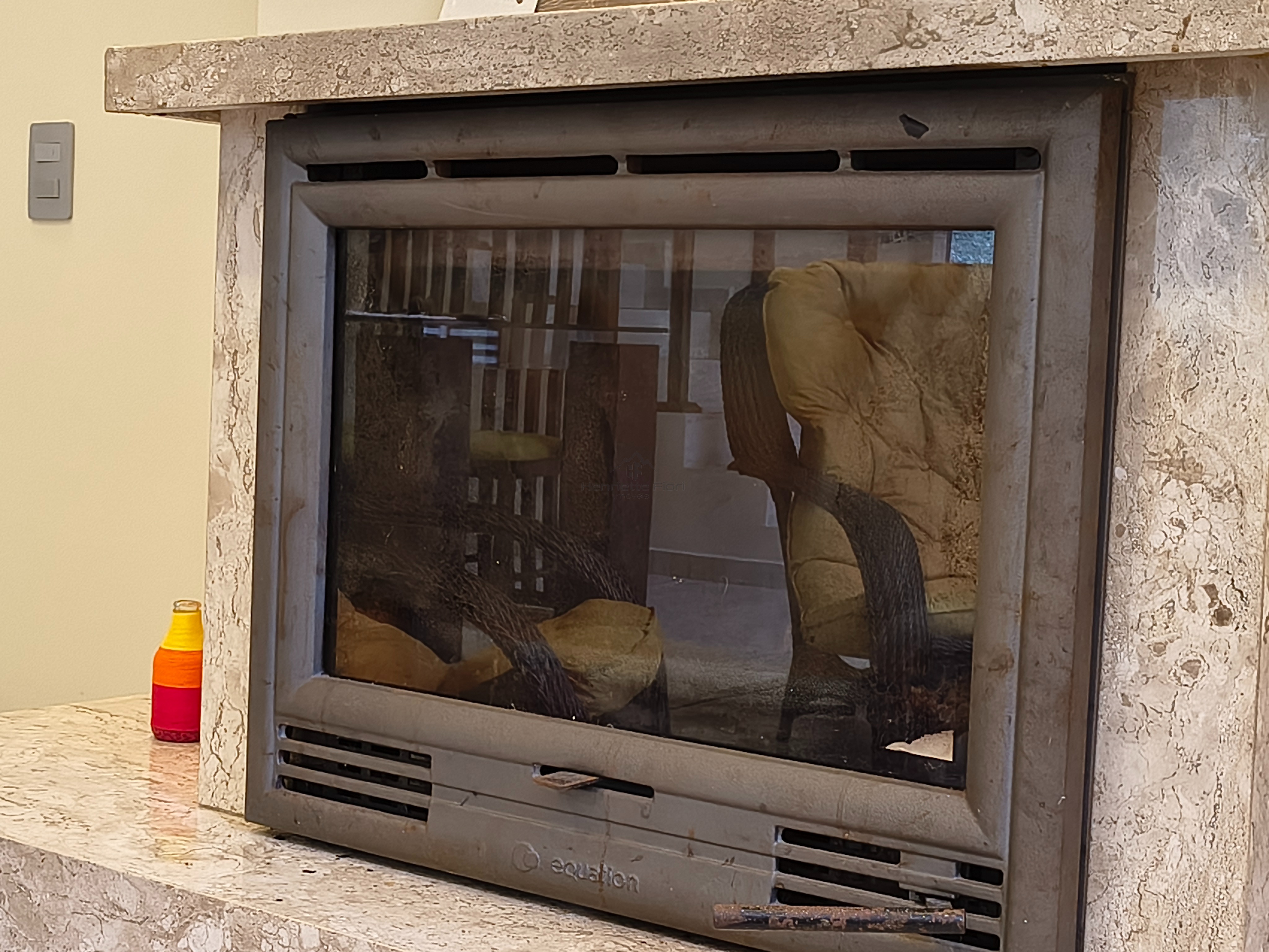 Sala de estar com lareira importada da Europa (trazida de navio)